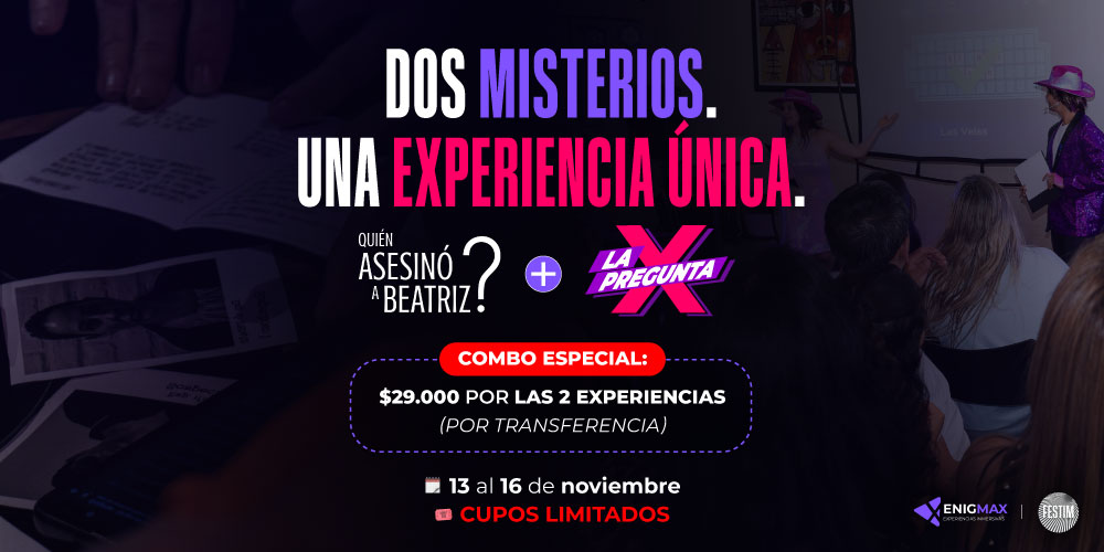 Enigmax es una compañía argentina de entretenimiento inmersivo que combina teatro en vivo, juego y narrativa interactiva. Diseñamos formatos en los que el público deja de ser espectador para convertirse en protagonista, tomando decisiones e interviniendo en tiempo real. Nuestras experiencias se adaptan a salas, festivales y espacios no convencionales, manteniendo calidad artística y técnica.